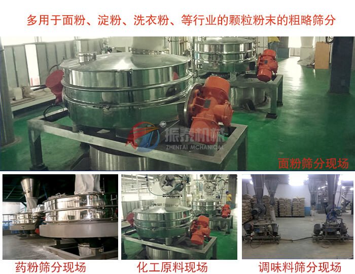 在面粉的制备过程中,面粉中会混有不小心落入的颗粒、粉末、包装线头等大颗粒杂质,通常杂质的含量在5%左右,为了快速除去这些杂质,通常选用直排筛作为面粉筛,面粉一般的筛分目数要求是18目。